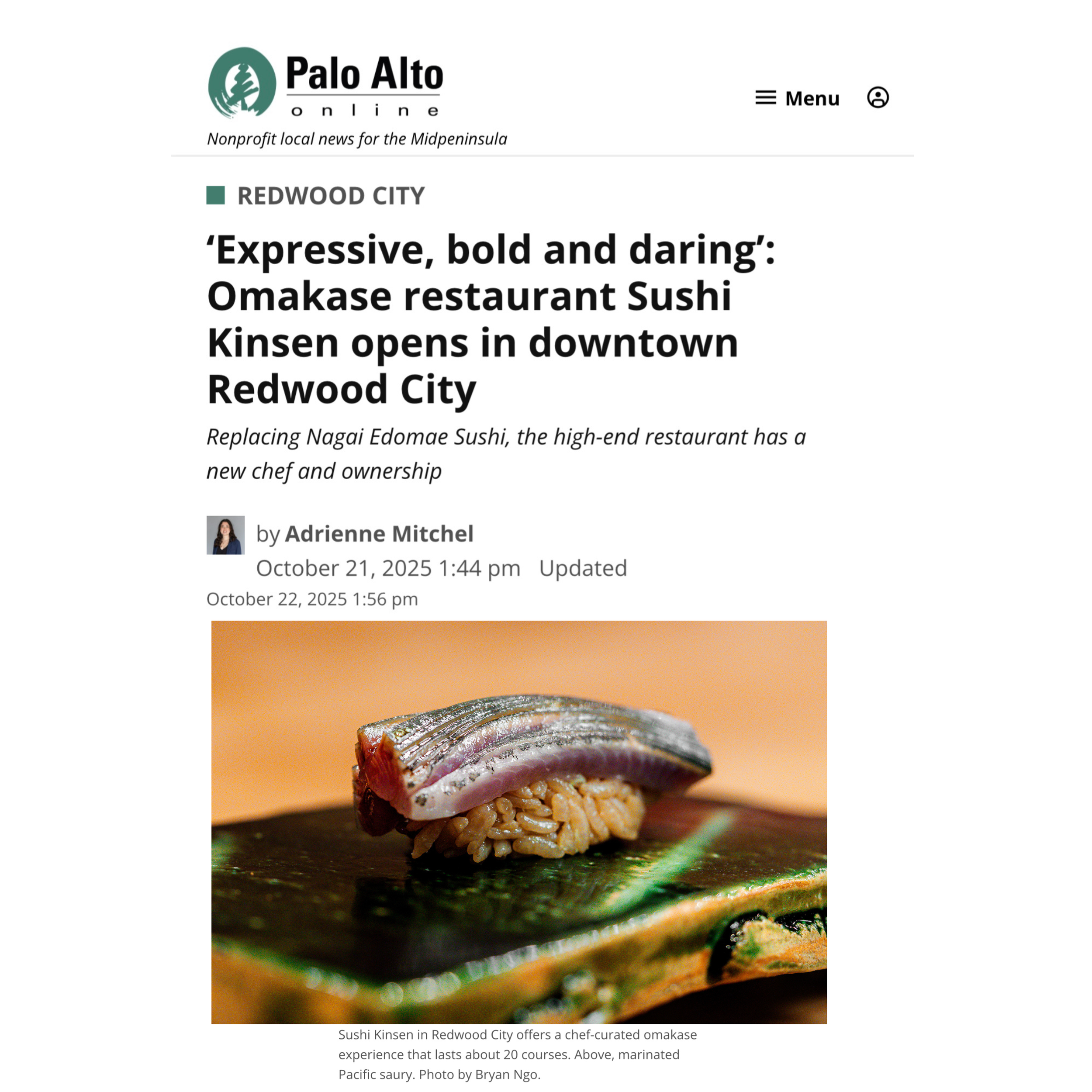 Sushi Kinsen invites you to experience omakase as both a craft and a dialogue—authentic in spirit, precise in execution, and tailored with sincerity. We look forward to welcoming you.